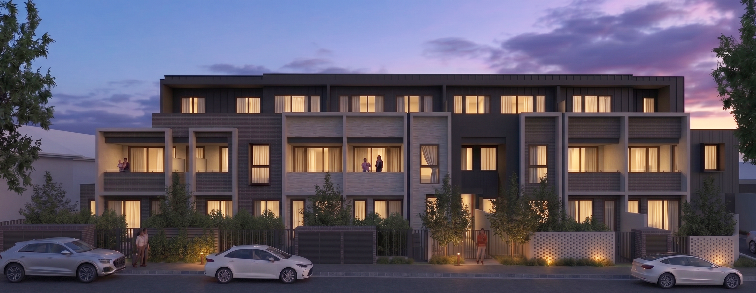 This modern multi-residential development presents a sophisticated blend of industrial texture and contemporary form. Rising three levels above a secure basement, the building features 40 meticulously designed apartments that prioritize both privacy and street-level engagement